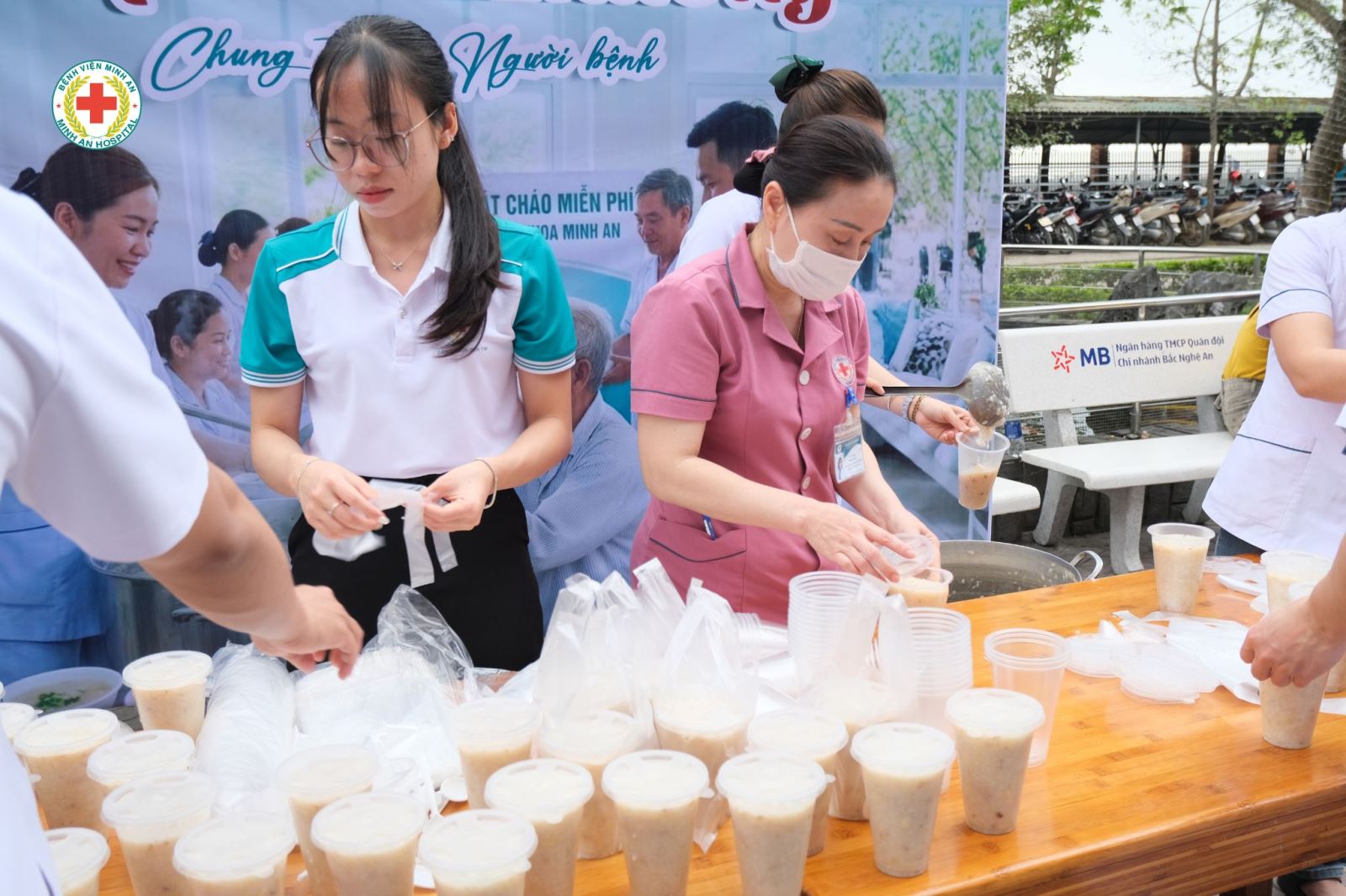 🥣 Chương trình được tổ chức vào 09h00 ngày 20/3 và tiếp tục vào 09h00 ngày 21/3/2026 tại khu vực sảnh tiếp đón bệnh viện. Hơn 350 suất cháo nóng hổi, đảm bảo dinh dưỡng đã được chuẩn bị và trao tận tay người bệnh với sự tận tình, chu đáo.