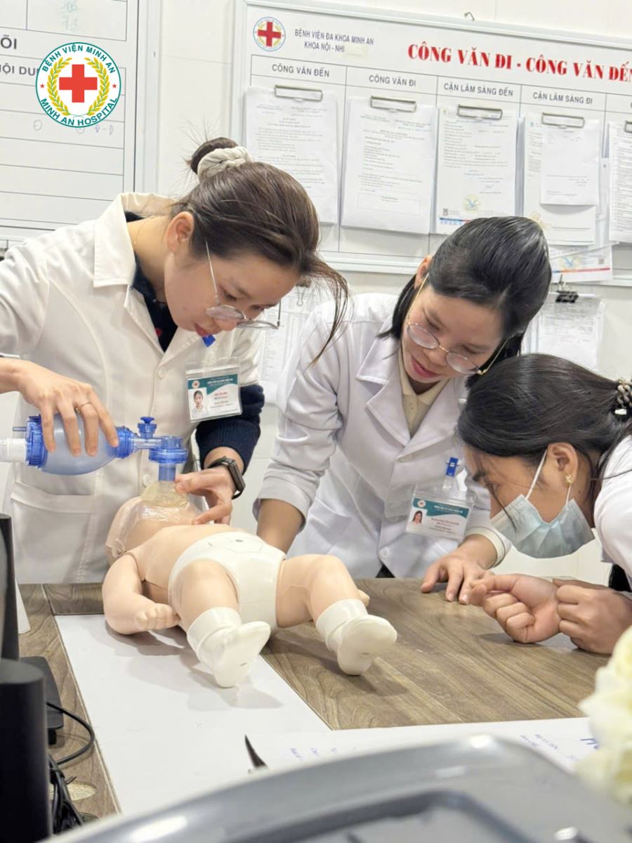 Đào tạo liên tục – cập nhật thường xuyên chính là nền tảng để Bệnh viện Đa khoa Minh An nâng cao chất lượng chăm sóc mẹ và bé, đặc biệt trong các tình huống cấp cứu sơ sinh cần xử trí nhanh, chính xác và đồng bộ.