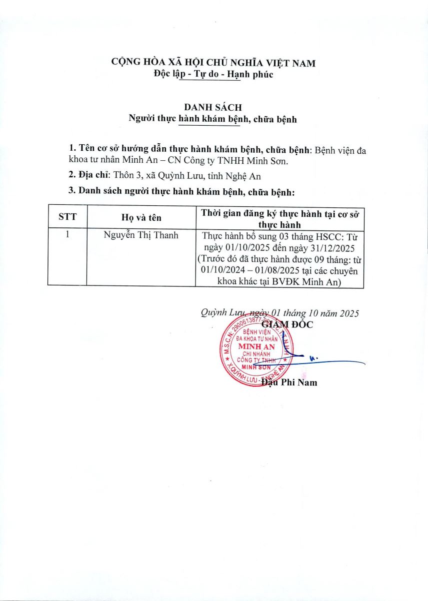 DANH SÁCH ĐĂNG KÍ THỰC HÀNH KHÁM CHỮA BỆNH NGÀY 01.10.2025