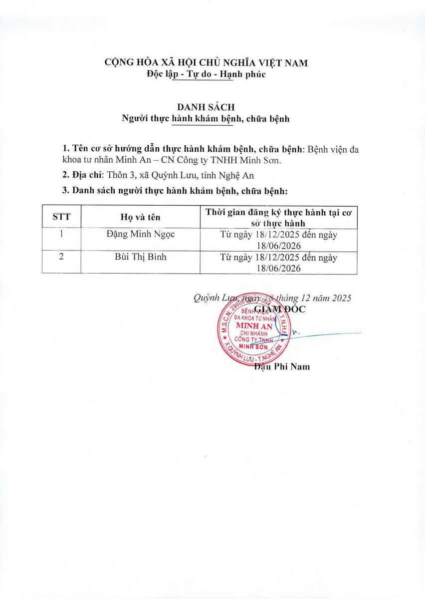 DANH SÁCH NGƯỜI THỰC HÀNH KHÁM BỆNH CHỮA BỆNH 18/12/2025