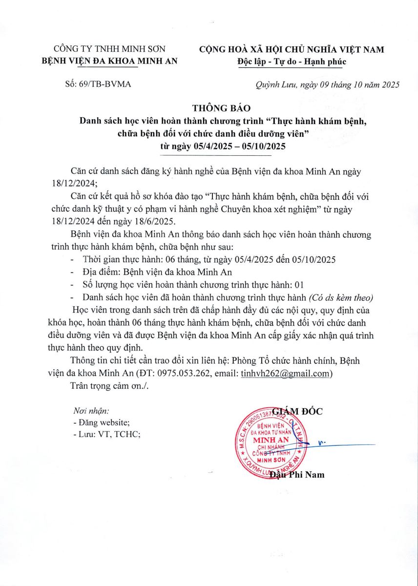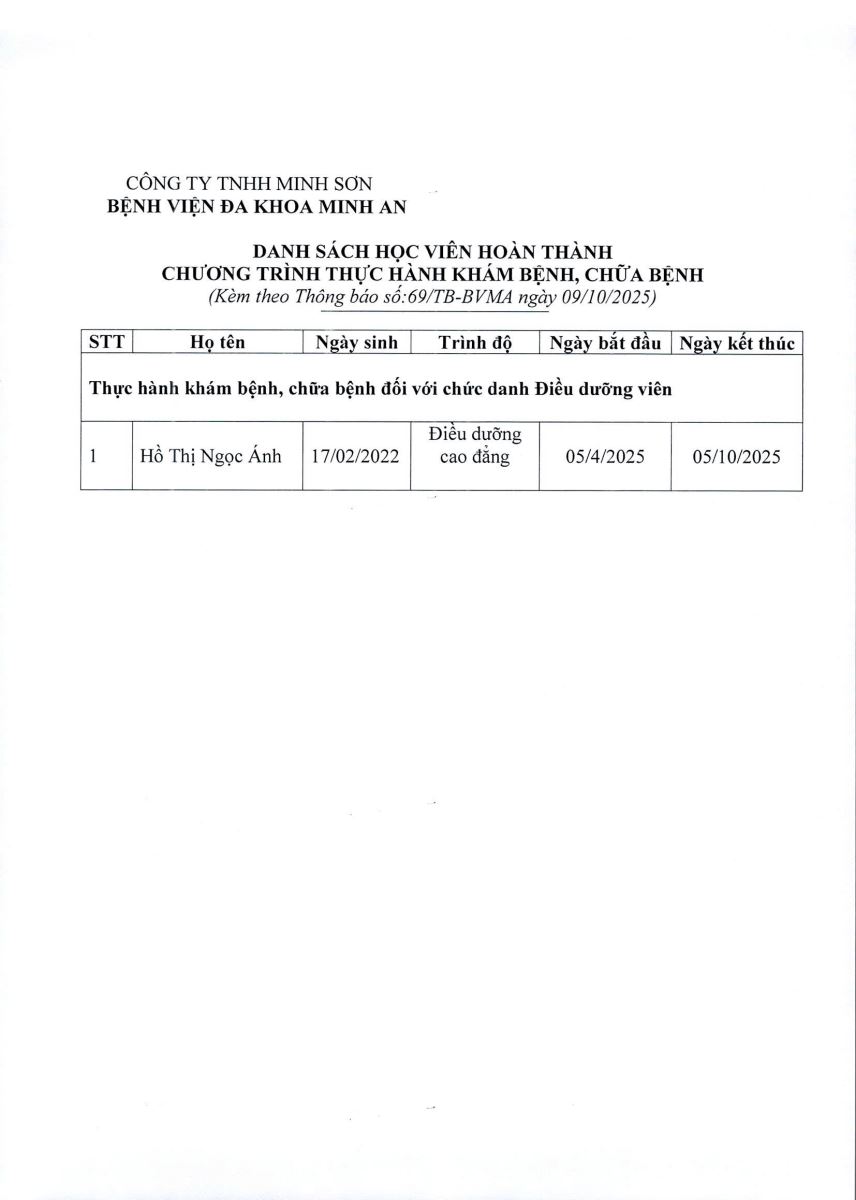 THÔNG BÁO DANH SÁCH HỌC VIÊN HOÀN THÀNH CHƯƠNG TRÌNH THỰC HÀNH KHÁM BỆNH CHỮA BỆNH (NGÀY 05/10/2025) Thứ 5, ngày 09/10/2025