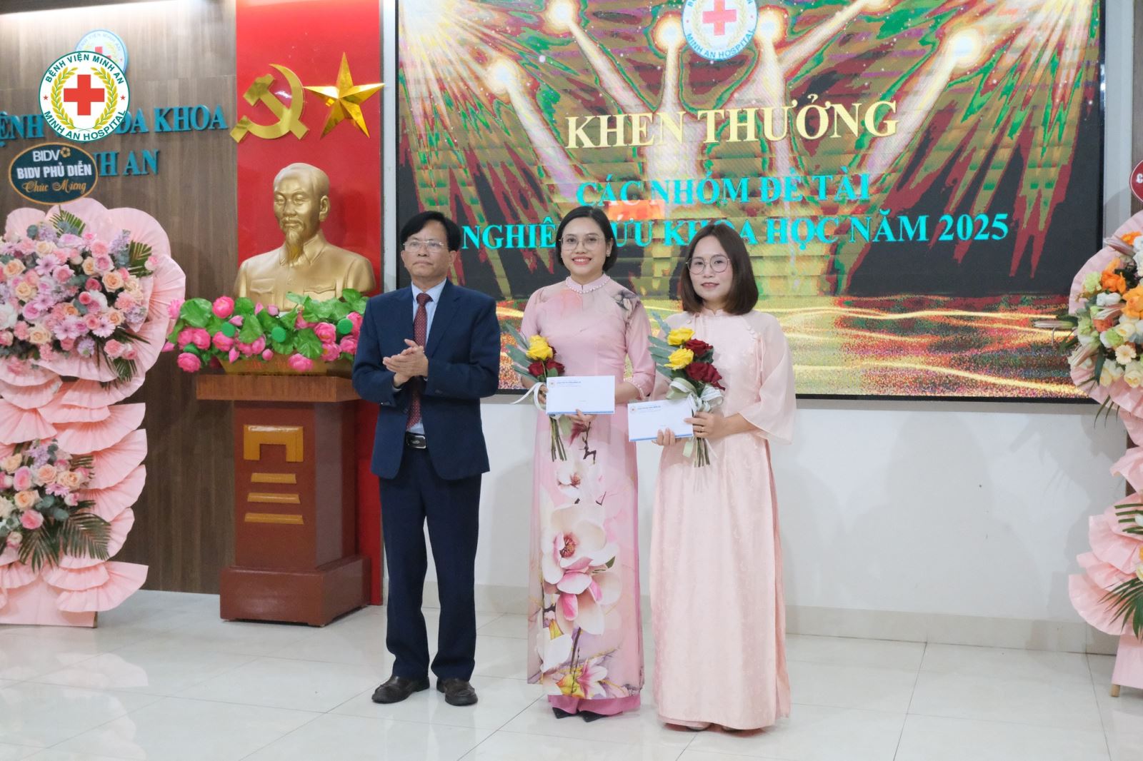 Chương trình cũng là dịp để vinh danh các tập thể, cá nhân tiêu biểu được Hiệp hội Bệnh viện tư nhân Việt Nam công nhận. Trao thưởng cho các chủ nhiệm đề tài nghiên cứu khoa học cấp cơ sở năm 2025 – ghi nhận tinh thần đổi mới, sáng tạo và nâng cao chất lượng chuyên môn.